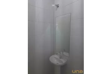 - Banheiro social com armário, box e espelho;