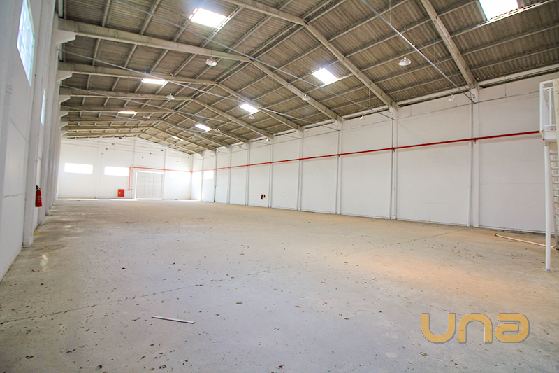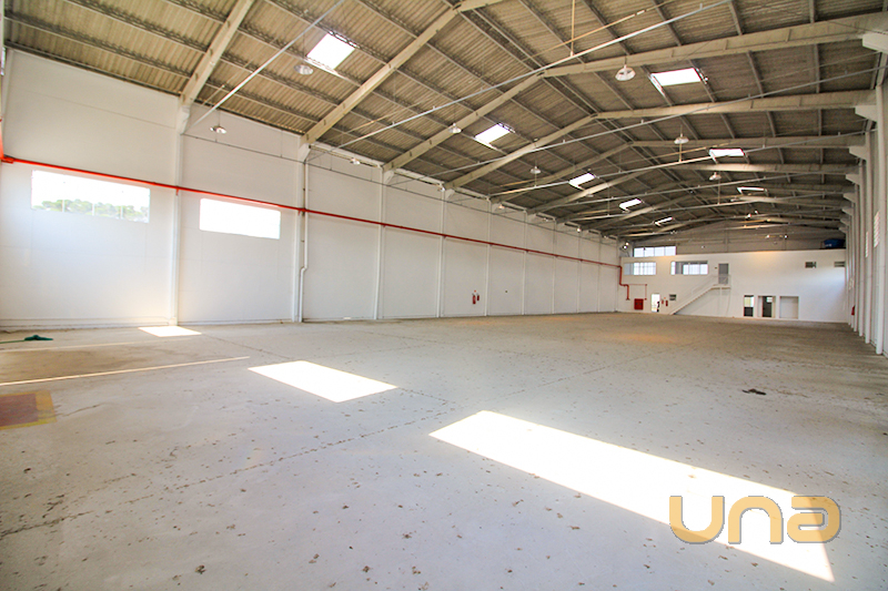 Estrutura Pré Moldado contendo 1 sala de recepção, 2 banheiros, 1 copa, mezanino com 2 banheiros, luminárias, parte da faixada em vidro e nos fundos, doca para carga/descarga.