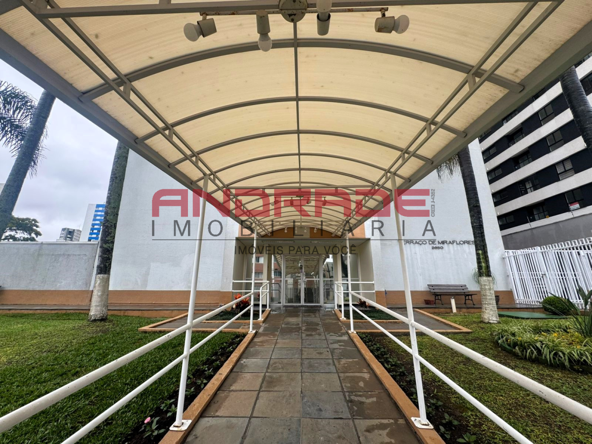 Edifício Terraço Miraflores conta com portaria 24 horas e excelente estrutura: 3 elevadores, salão de festas, sala de jogos, churrasqueira (fechada), playground e academia externos, além de duas piscinas (adulto e infantil).