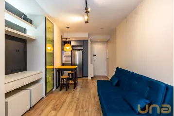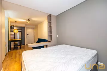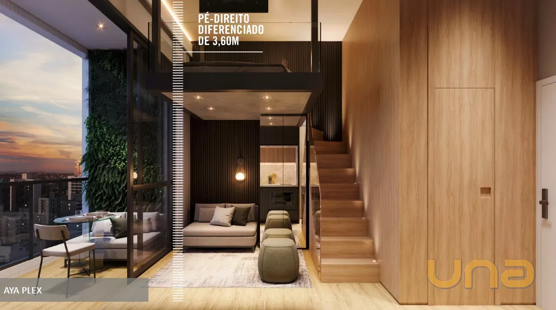 Com área privativa de 23 m², pé direito elevado de 3,60m e sacada.
